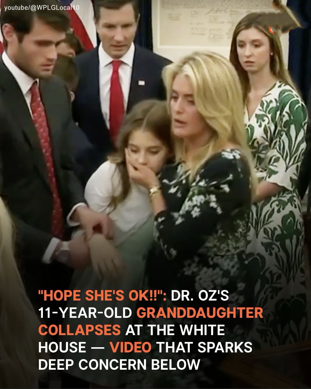 Philomena is led out after fainting during her grandfather, Dr. Oz’s swearing-in ceremony, dated April 19, 2025 | Source: YouTube/@WPLGLocal10
