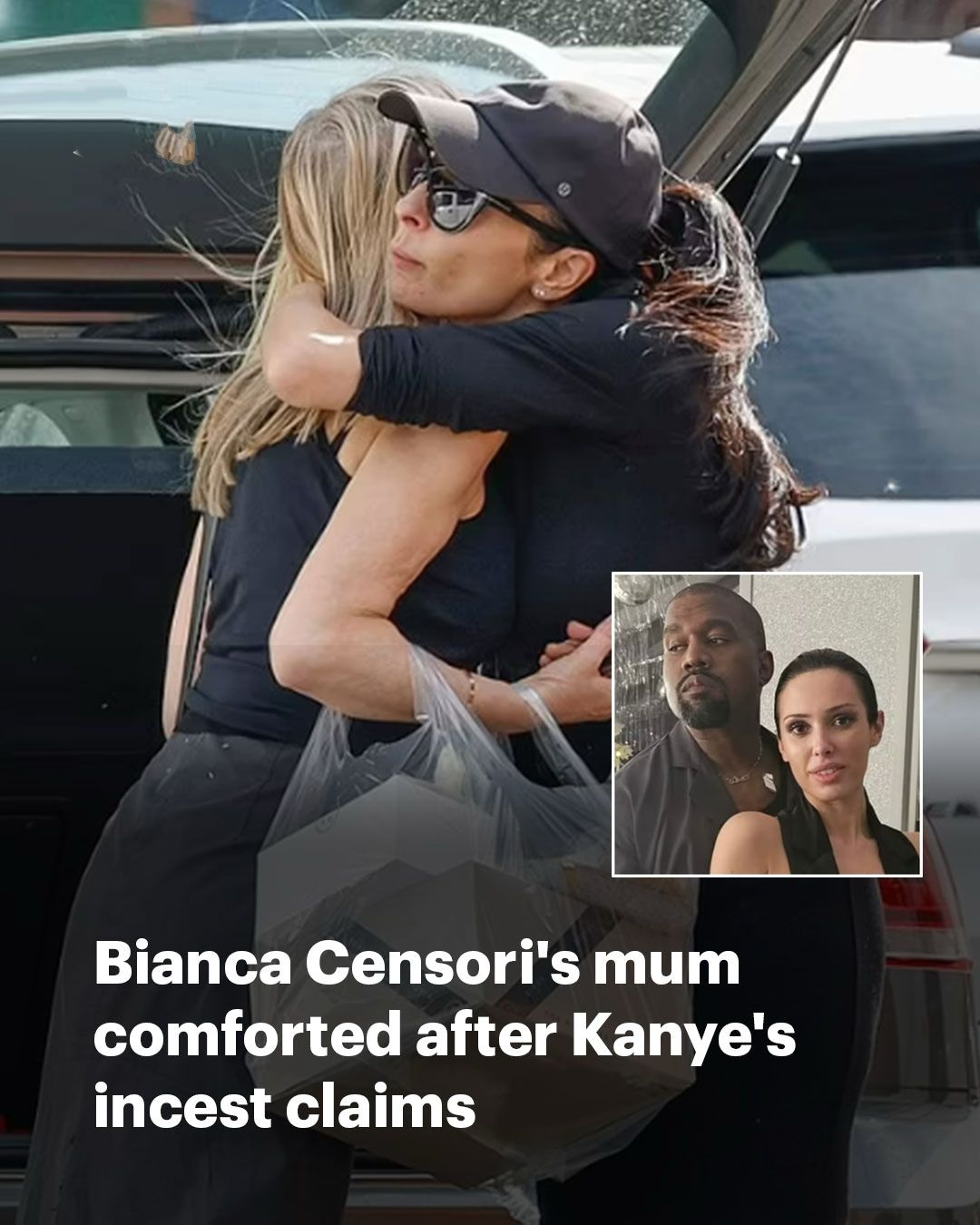 Bianca Censori’s mother has sought comfort from a friend after her son-in-law Kanye West went public with claims that he took part in incestuous acts with his male cousin as a child.
