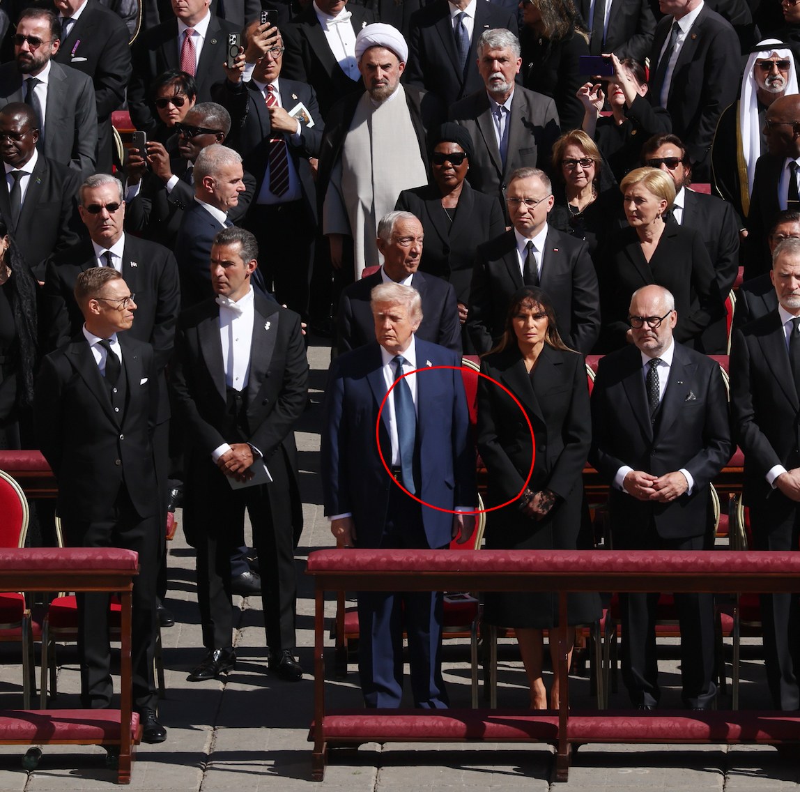 While many followed these guidelines—including Melania Trump, who wore a traditional black ensemble in line with Catholic custom despite it being her 55th birthday—Trump’s vibrant suit veered from expectations.