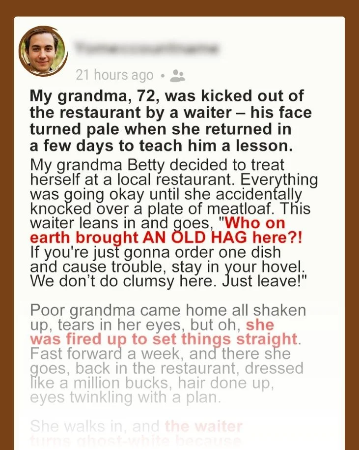 My 72-Year-Old Grandma Was Kicked out of Luxury Restaurant – Her Return Few Days Later Left Waiter Pale
