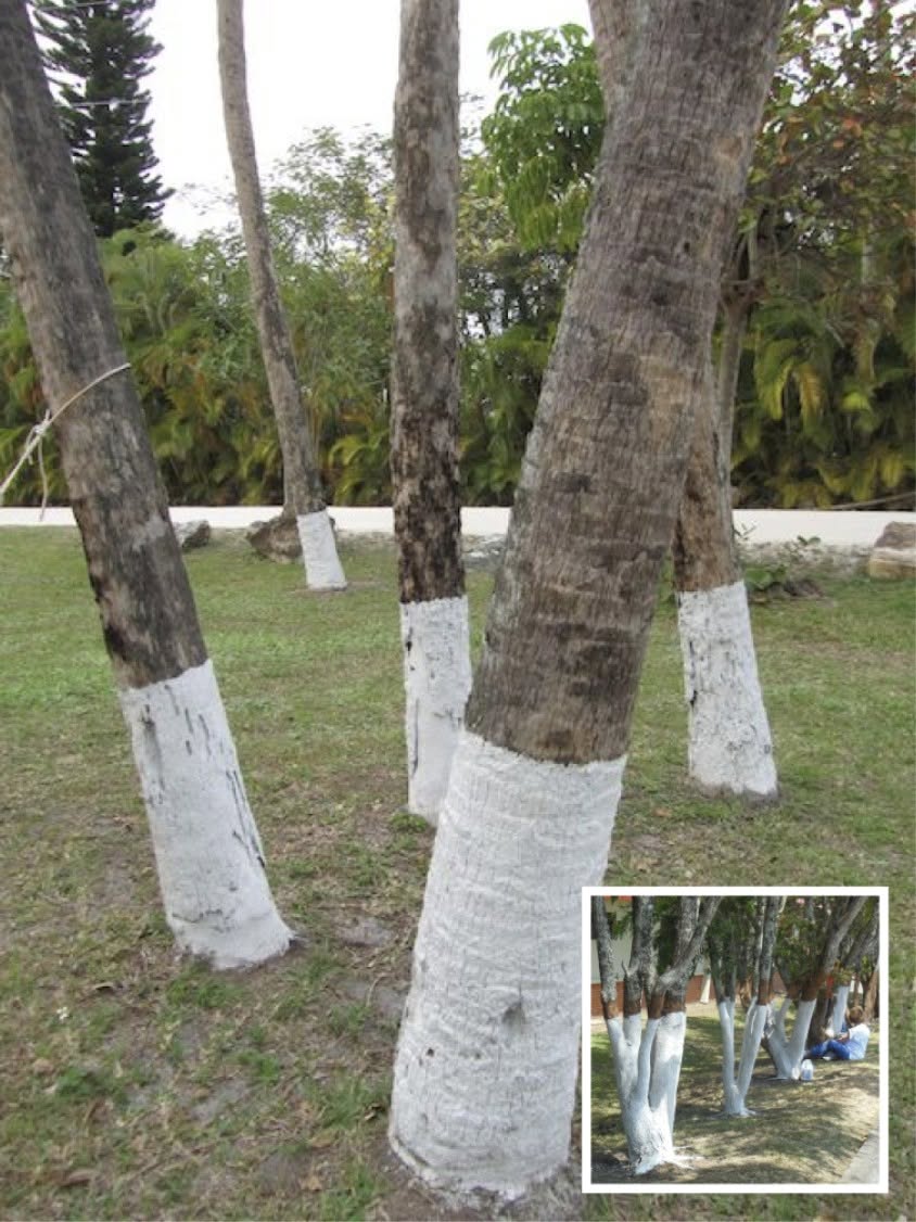 Trees with most of their trunk painted white, Photo Credit: Wikimedia