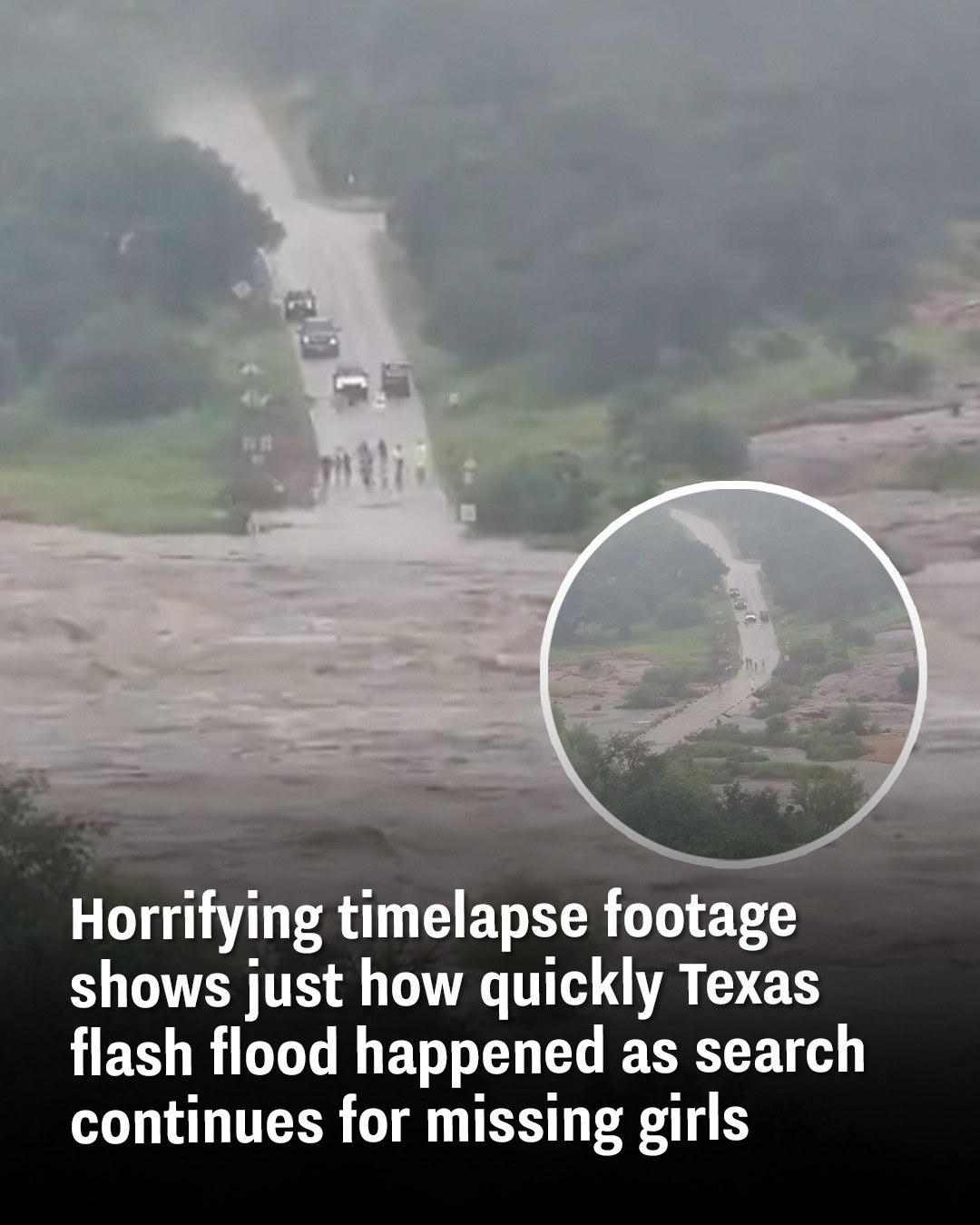 Horrifying timelapse footage shows just how quickly Texas flash flood happened as search continues for missing girls