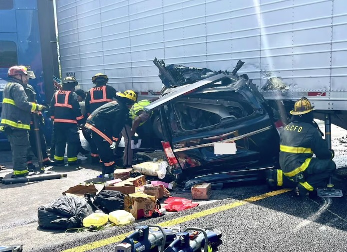 The driver of the minivan was unable to avoid the semi-truck. The semi-truck and trailer “jackknifed and came to rest on top” of the minivan, according to the St. Lucie County Sheriff’s Office.
