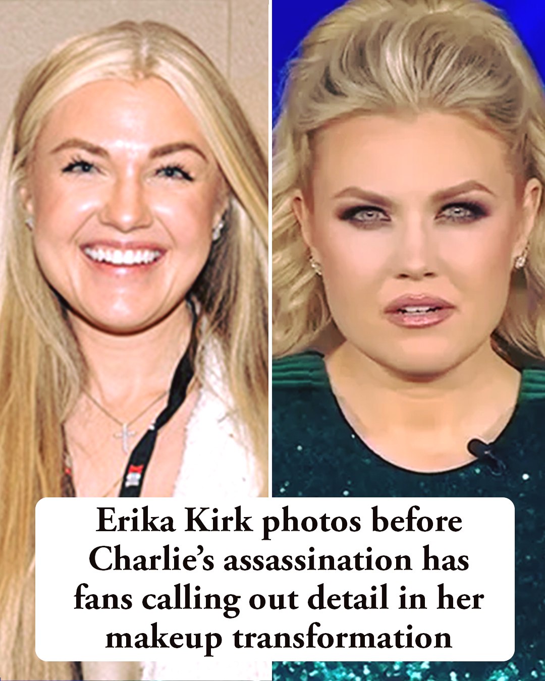 Since the seismic shock of her husband’s assassination last autumn, Erika Kirk has lived her life under a relentless, high-definition microscope. As the newly installed CEO of Turning Point USA, she is navigating the dual roles of grieving widow and political powerhouse. However, it is not just her policy shifts drawing fire; it is a single, unearthed photograph from March 2025 that has ignited a viral debate over her radical physical transformation. The image, captured just six months before Charlie Kirk was fatally shot during a public appearance, reveals a version of Erika that feels worlds away from the woman now leading the MAGA vanguard. In the photo, she wears a surprisingly minimal look: a light dusting of foundation, mascara, and neatly groomed brows. To the casual observer, she is nearly unrecognizable compared to the “Full Glam” persona she has adopted since stepping into the national spotlight.