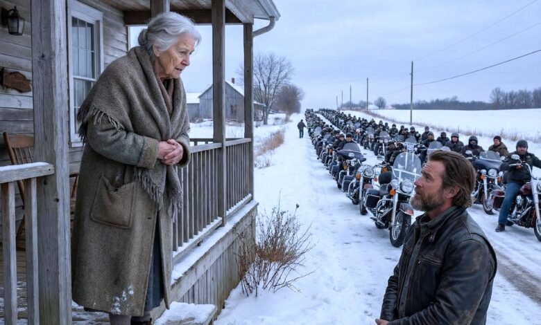 One… two… then many more, cutting through the whiteout like ghostly blades. Engines roared, deep and thunderous, growing louder until the sound pressed against her chest. Fifteen motorcycles turned into her long, snow-choked driveway, their tires crunching over ice and frozen gravel.